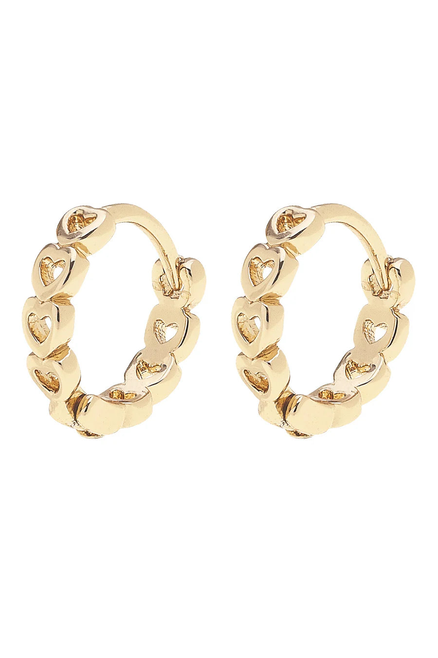 Blakely Linked Hearts Mini Huggie Hoop Earrings in Shiny Gold